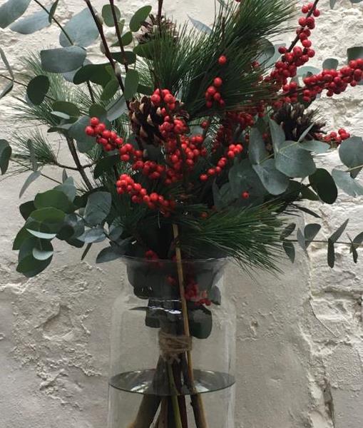 Eucalyptus and pine with a splash of festive berries make this bunch... Festive!