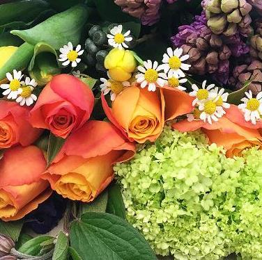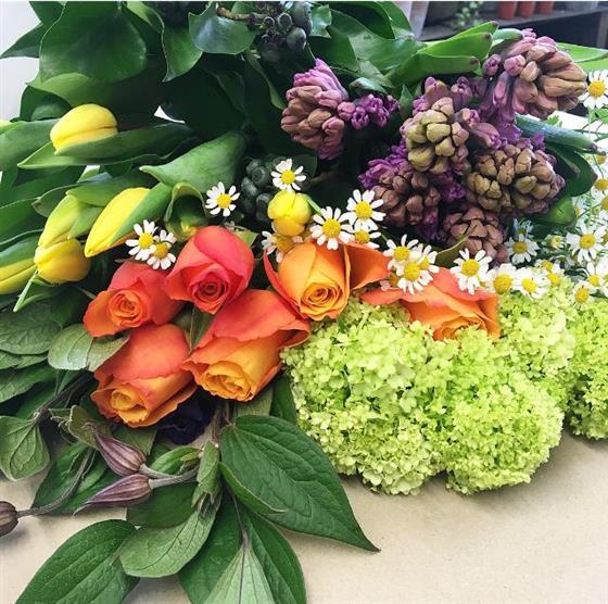 A selection of seasonal flowers, beautifully handtied, ready to go straight into a glass vase